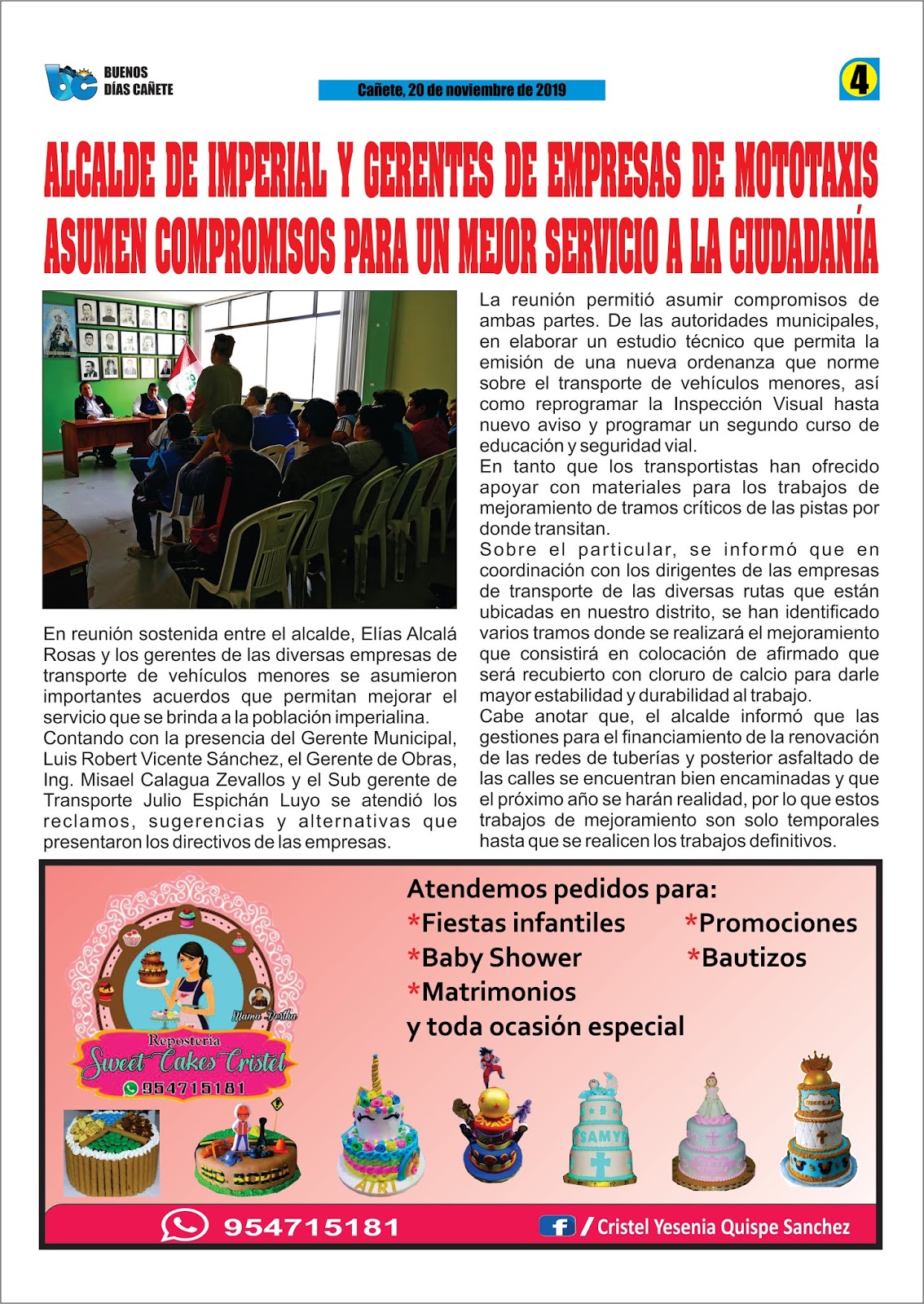 DIARIO DIGITAL BUENOS DÍAS CAÑETE, EDICIÓN 20 NOVIEMBRE 2019