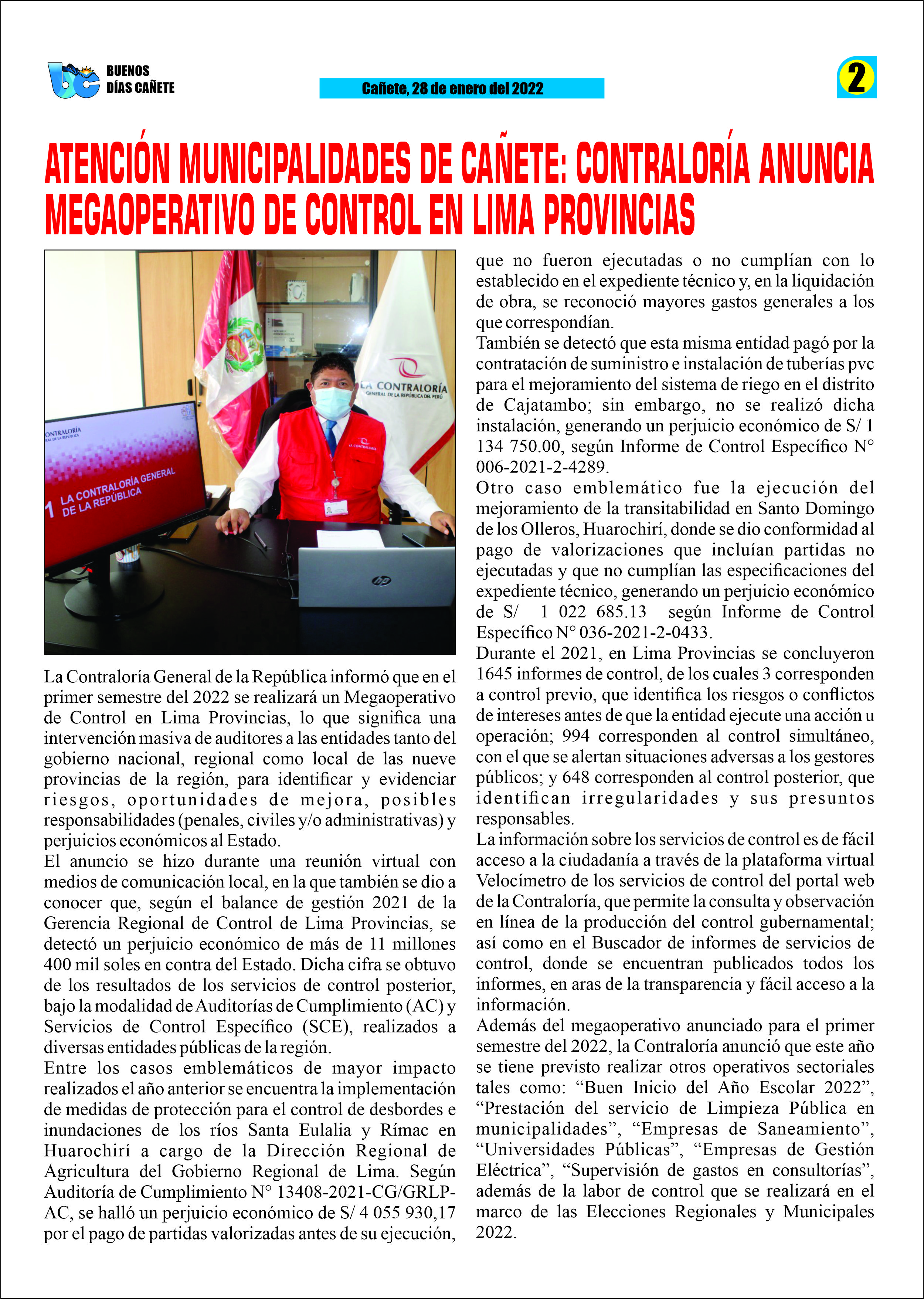DIARIO DIGITAL BUENOS DÍAS CAÑETE, EDICIÓN 21 ENERO 2022